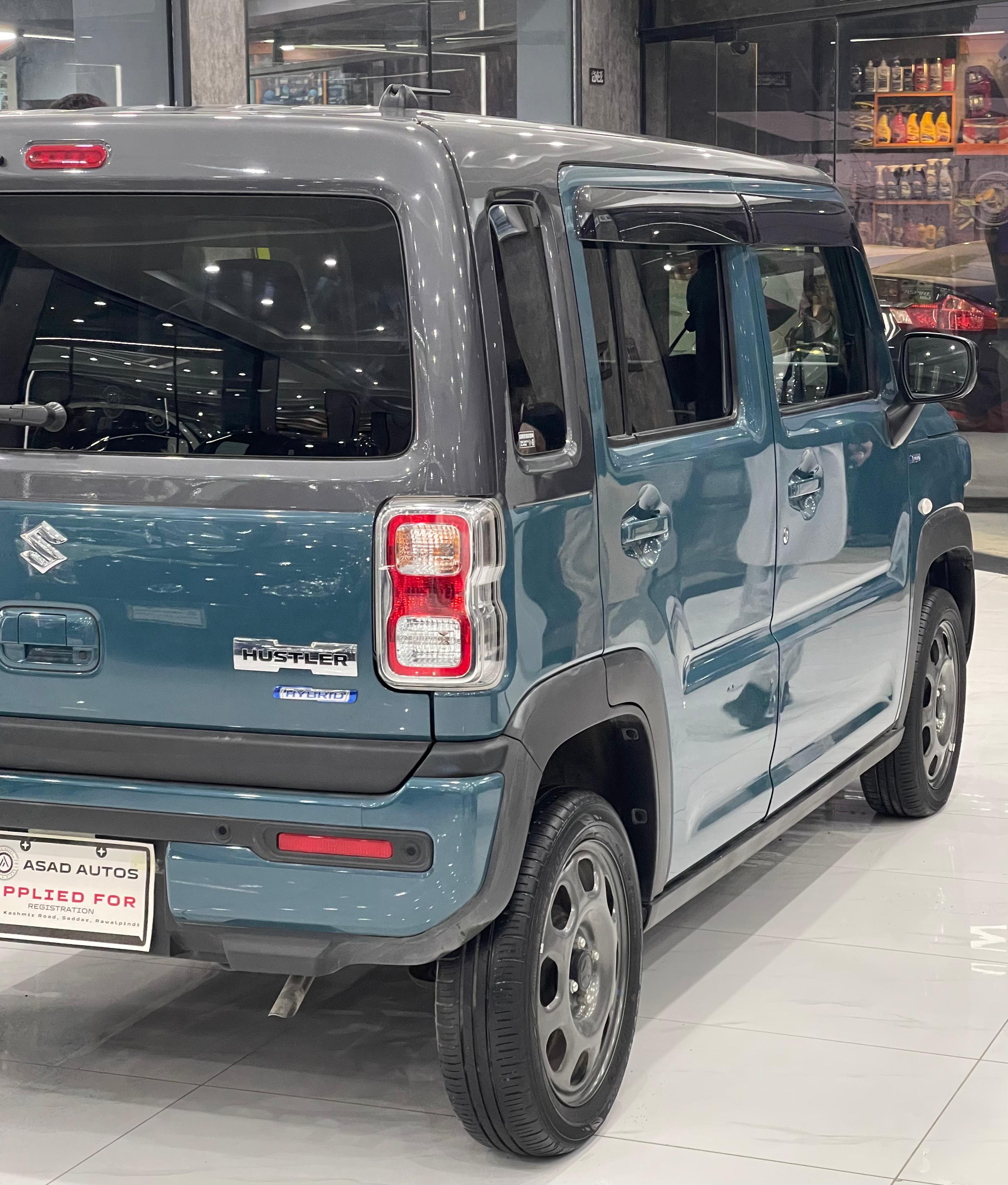 This Suzuki Hustler 2021 is a compact and fuel-efficient Japanese kei car, perfect for city driving. Imported in 2024 and driven only 20,000 km, it offers a nearly new experience with a spotless black interior and a stylish sky blue exterior. The car is unregistered, giving buyers the freedom to register it in their desired city. It holds an R Grade rating due to a minor spray on one part, but remains in excellent condition overall. A great choice for those looking for a reliable, feature-packed, and budget-friendly ride.